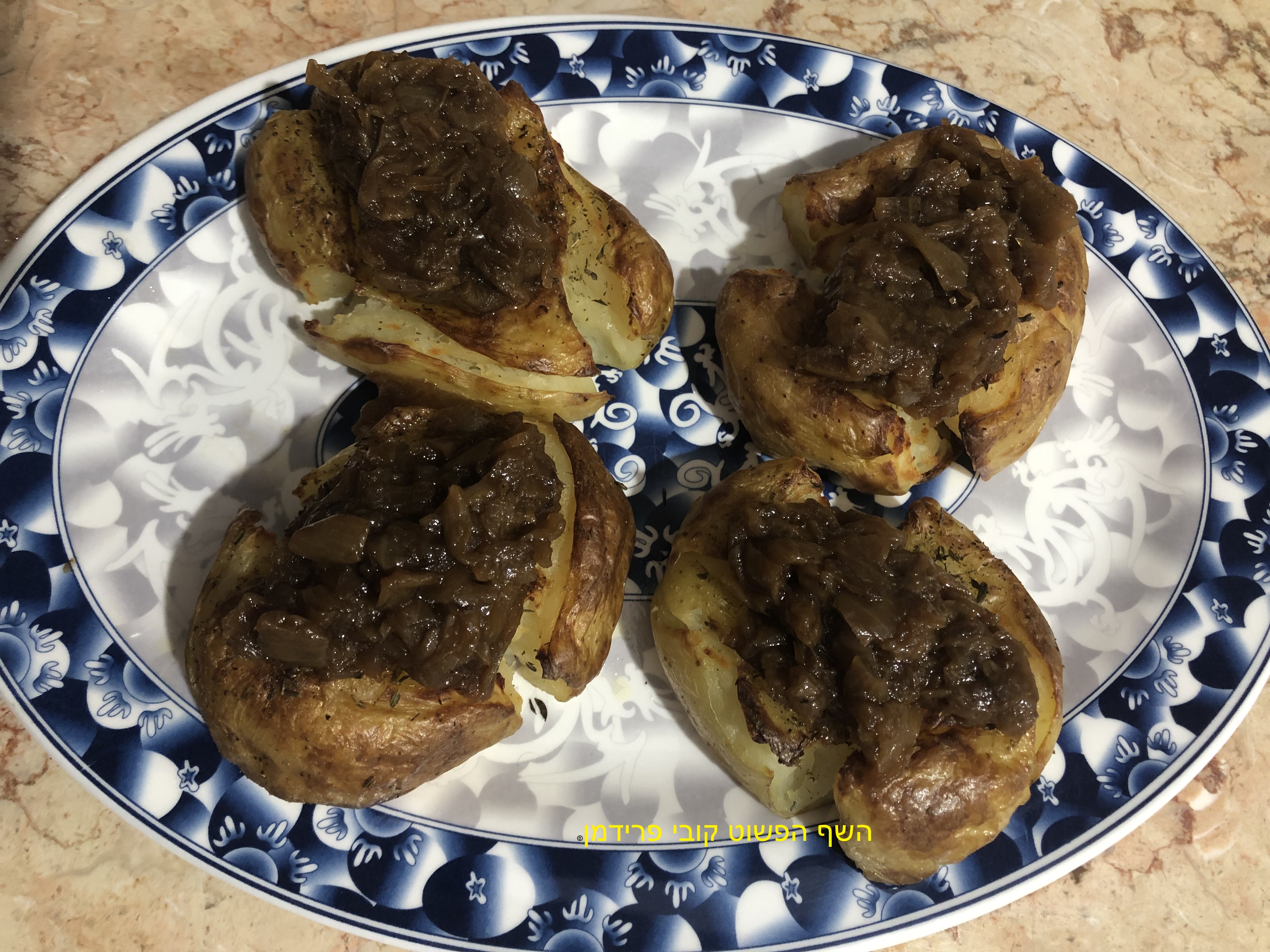 תפו"א מעוכים בתנור עם ריבת בצלבצל מקורמל ,