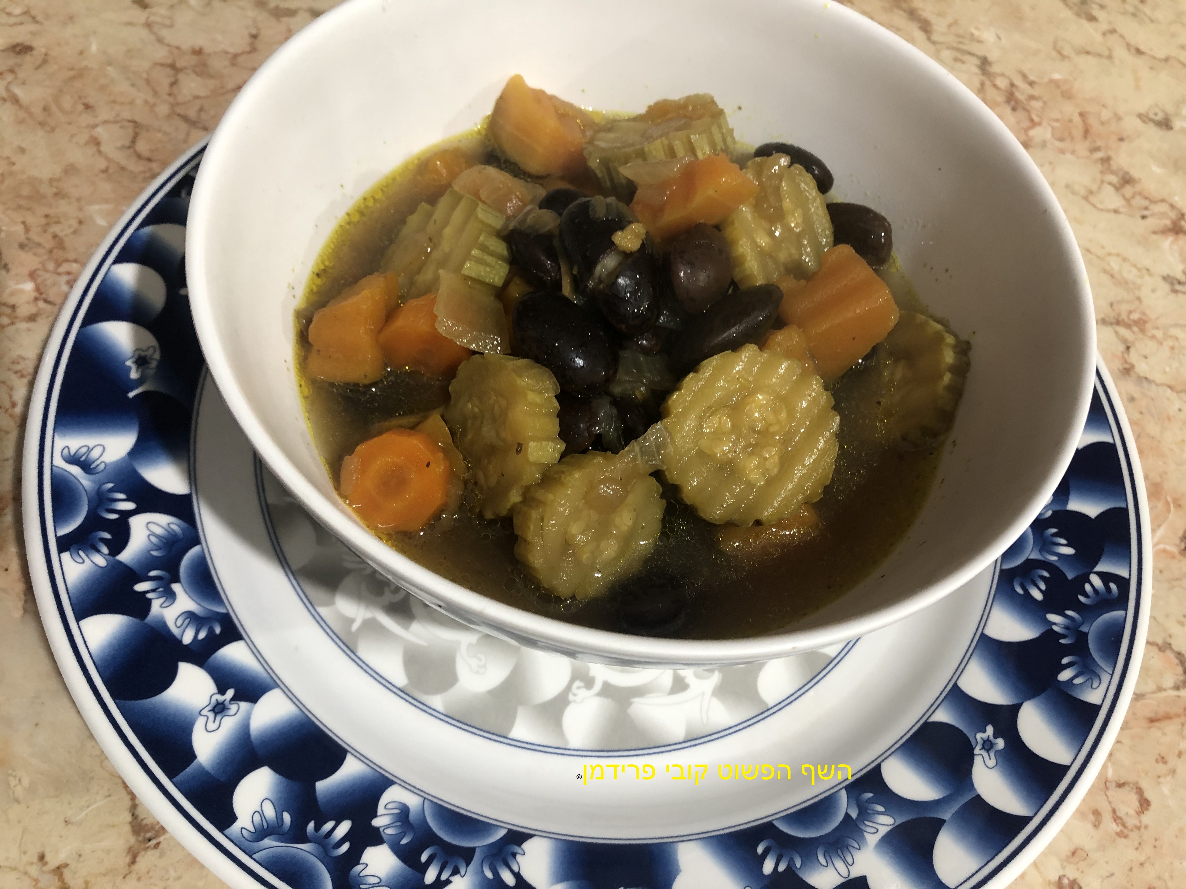 מרק שעועית שחורה מנומרת (גמבו)עם גזר דלורית וקישוא טבעוני ללא גלוטן,