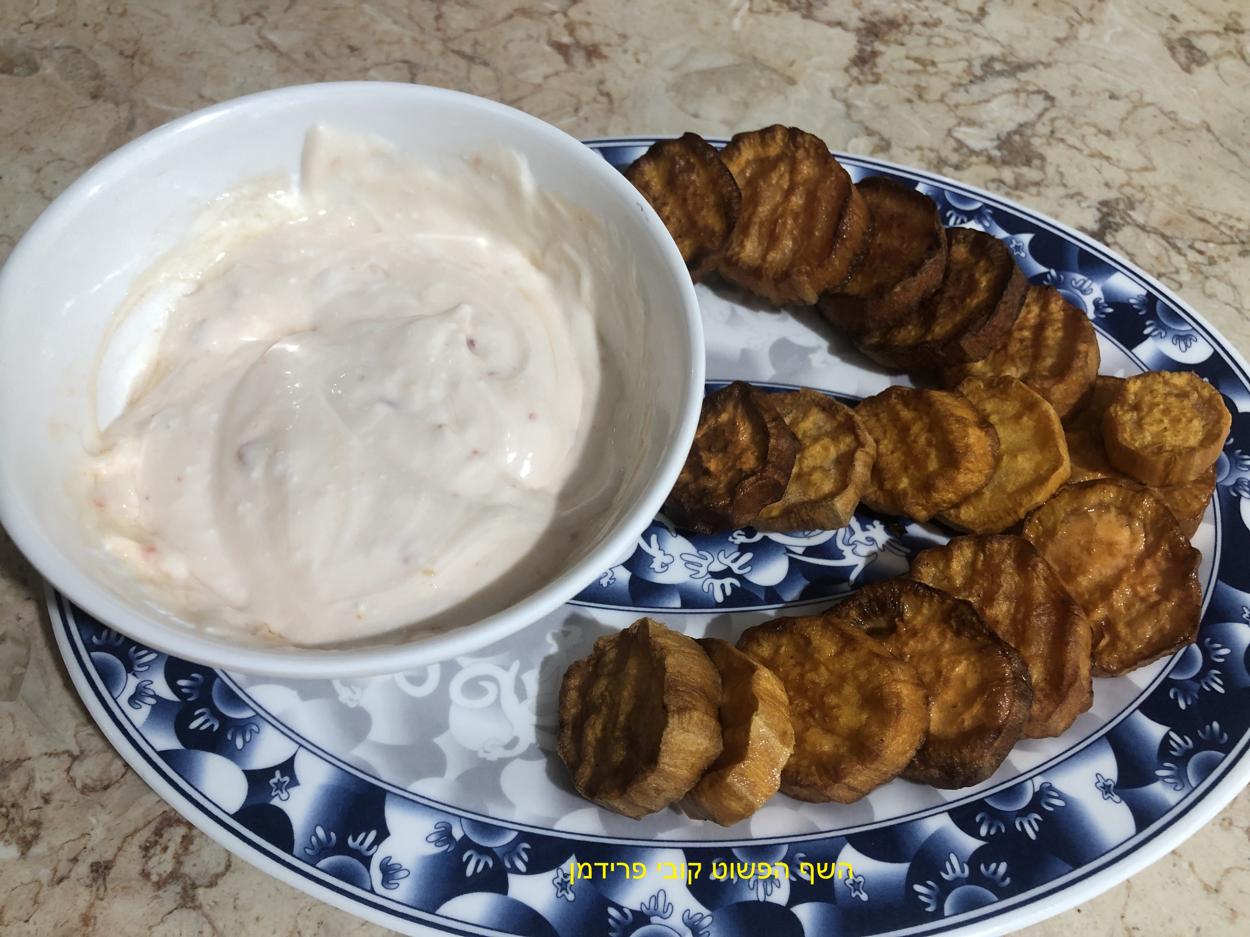 צ'יפס בטטה בטבעות מזוגזגות עם מטבל שמנת חמוצה וצ'ילי מתוק לשבועות,