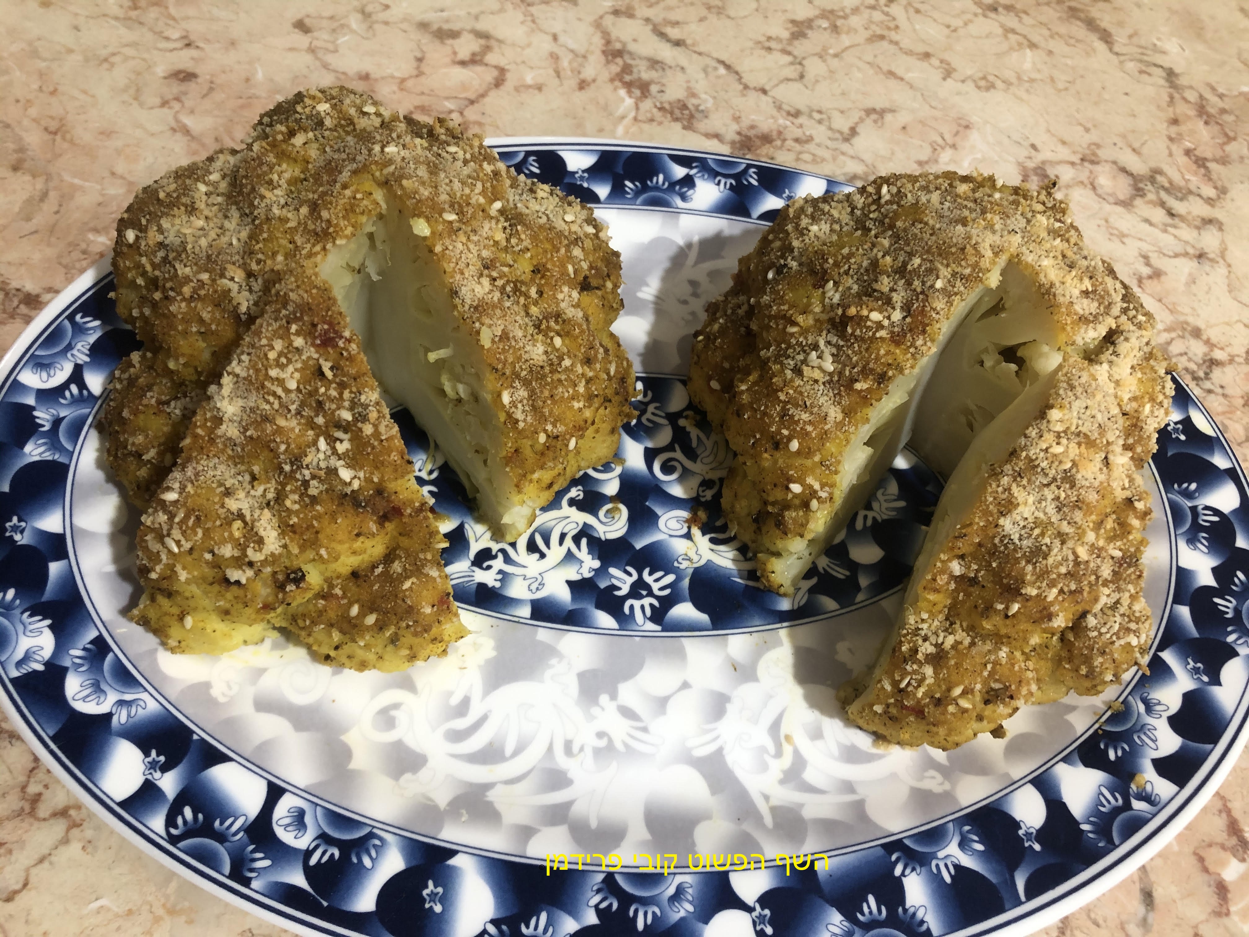 כרובית שלמה בתנור עם התיבולית ראס אל השף הפשוט טבעוני,