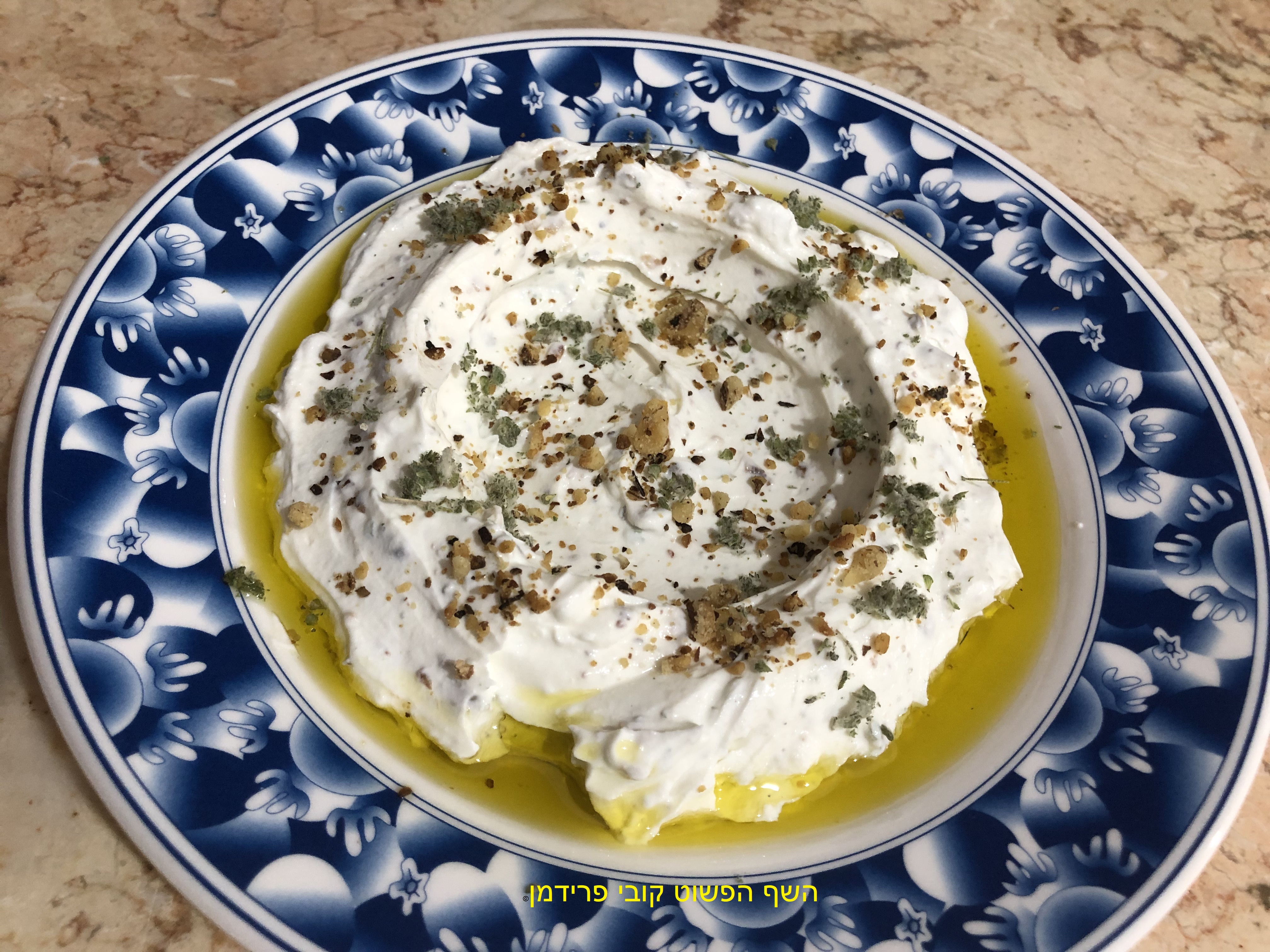 לבנה מסורתית ביתית אסלי עם אגוזים וזעתר לשבועות ויתר השנה,