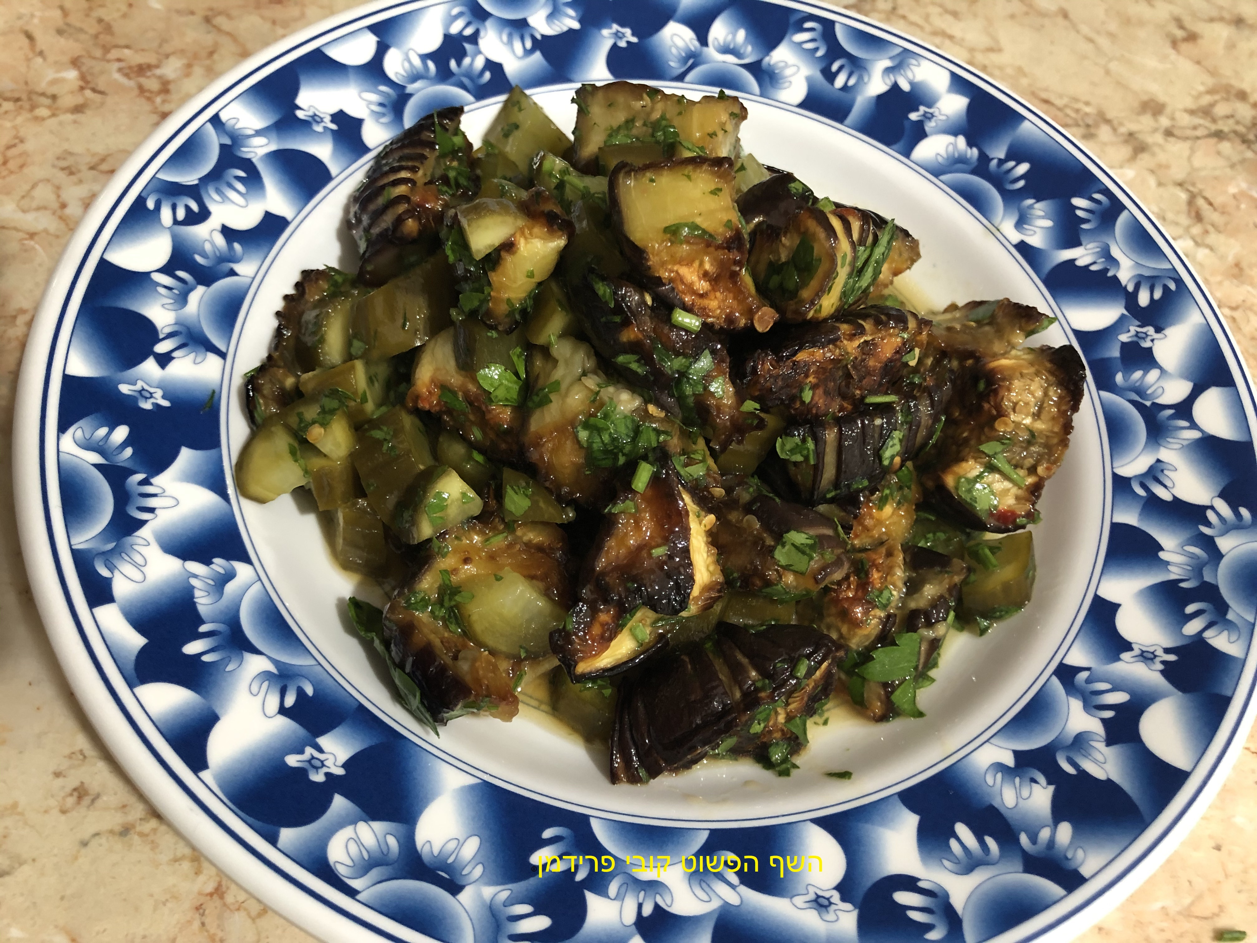 סלט חצילים פיקנטי בתחמיץ טבעוני ללא גלוטן,