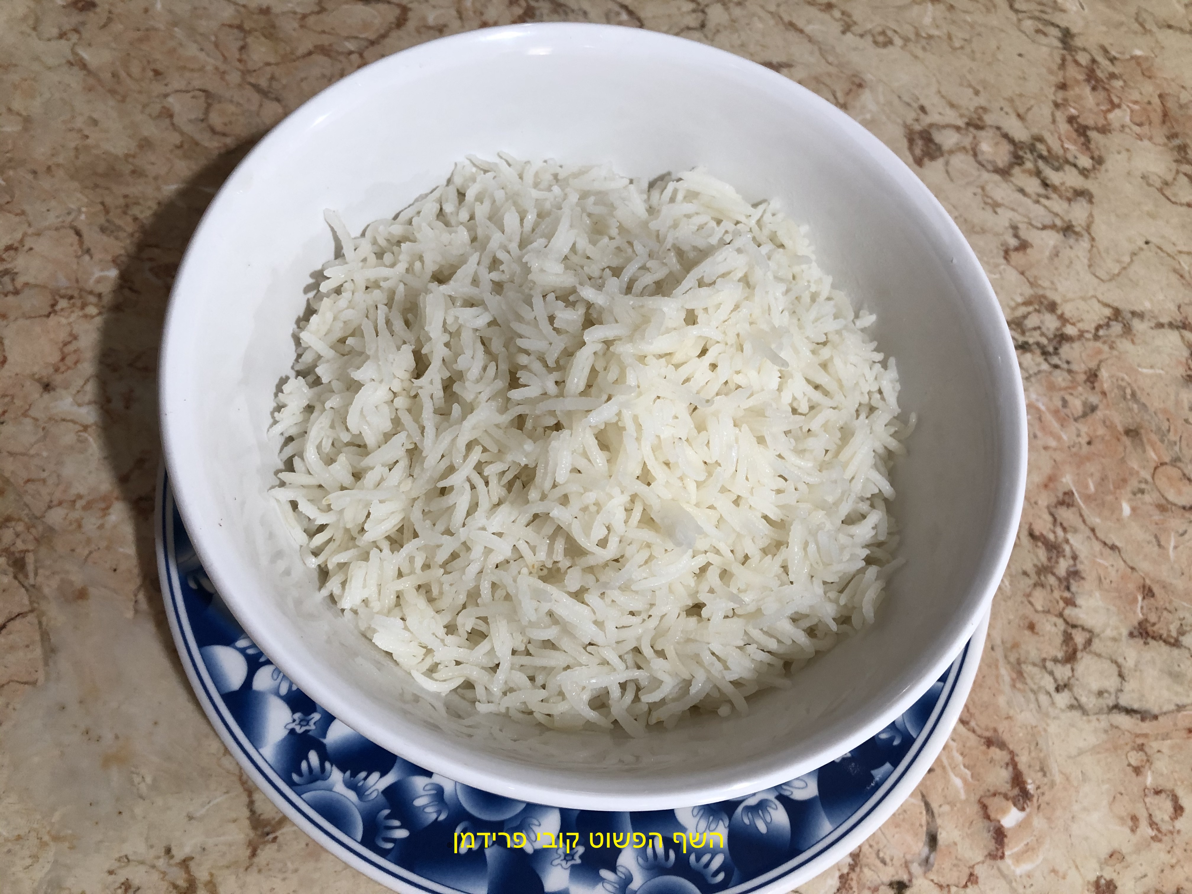 להוסיף חצי כפית מלח הימלייה כף שמן ו3 כוסות מים רותחים לערבב לכסות עם המכסה,