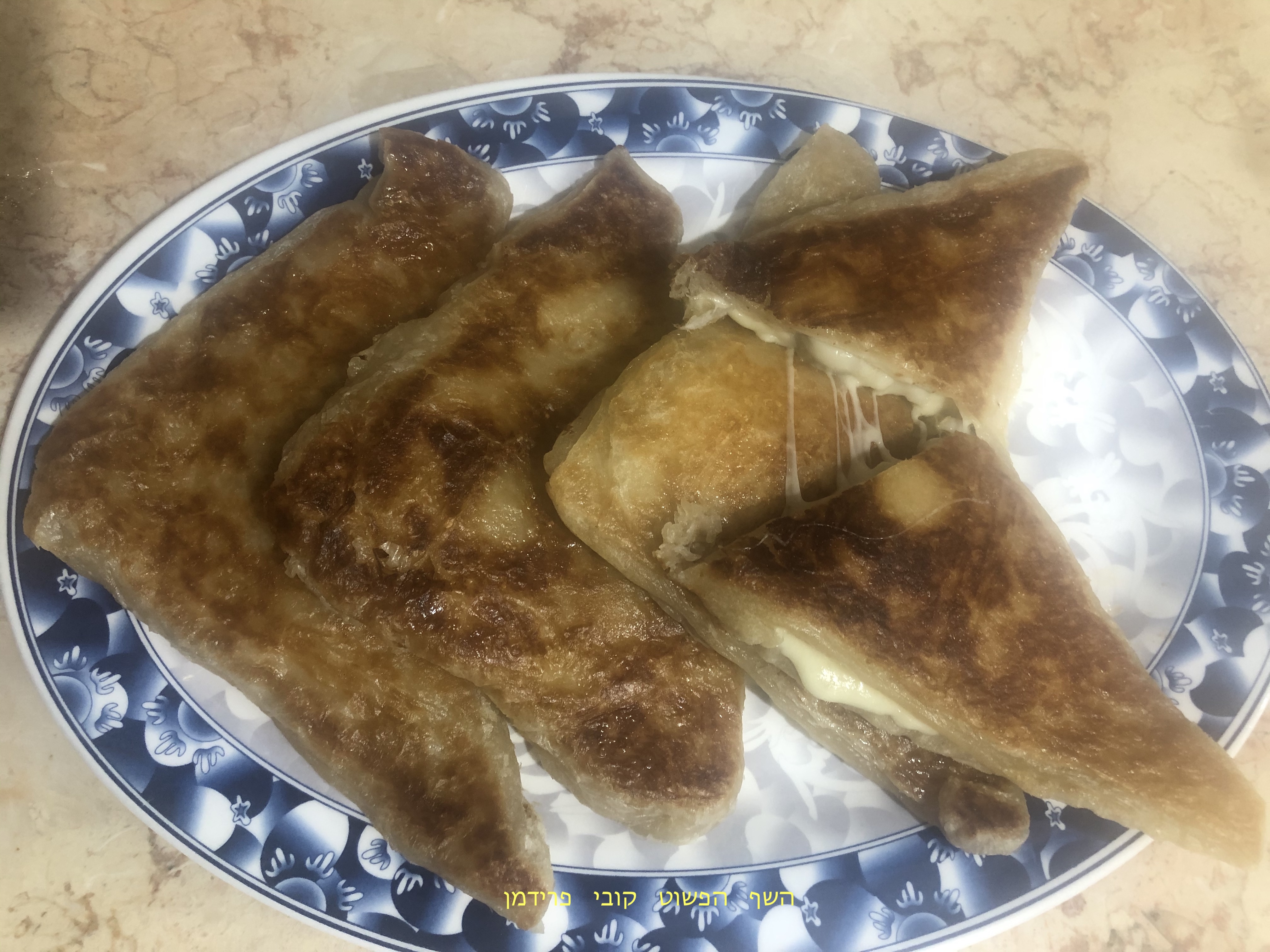 בורקס גבינה וזיתים מבצק עלים במחבת,