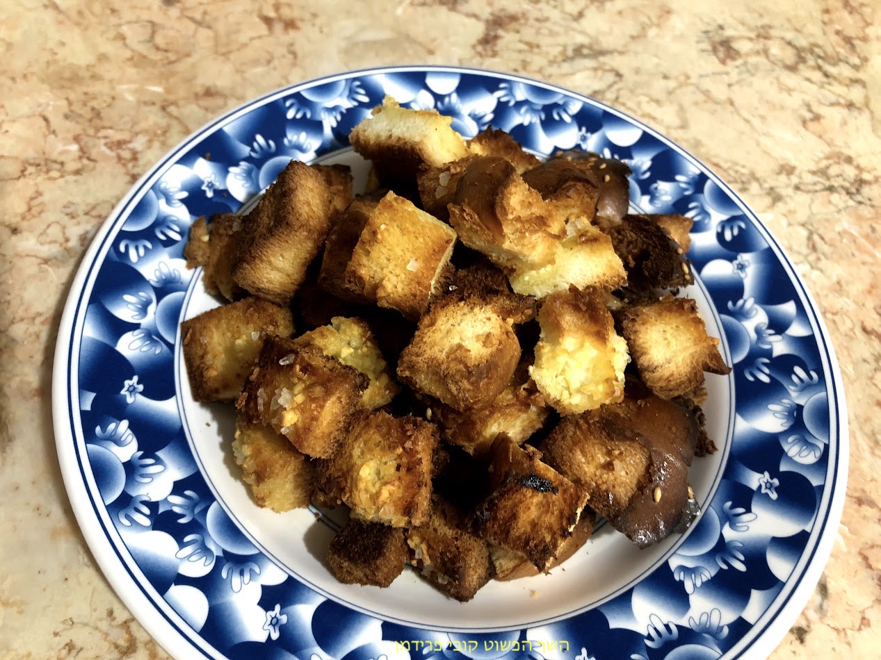 קרוטונים מחלה מתוקה עם שום ושמן זית,