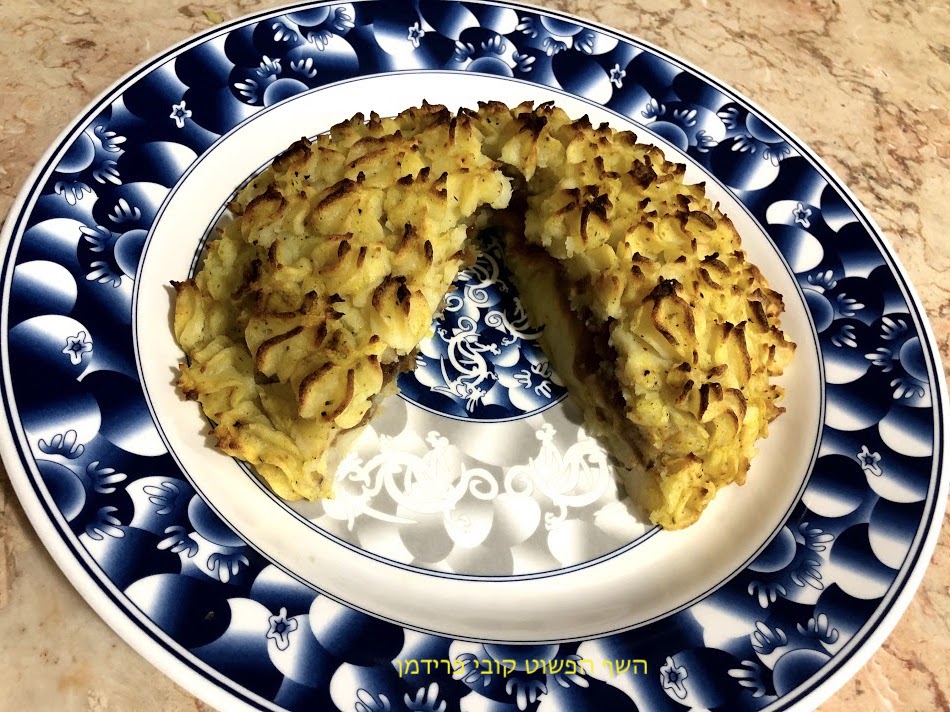 לכסות עד סוף גובה הקערית עם פירה,