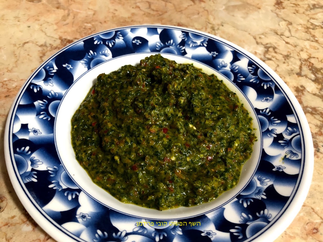 להוסיף 2 חבילות כוסברה ללא הגבעולים העבים 6 שיני שום רבע כפית כמון רבע כפית פלפל שחור גרוס רבע כפית מלח הימלייה לטחון למשחה חלקה,
