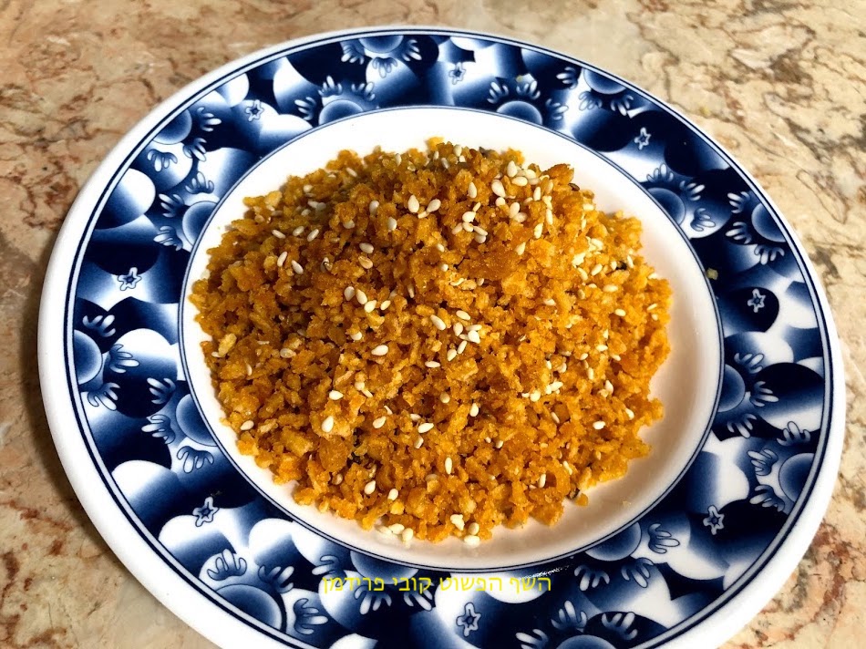להוסיף 2 כפות שומשום קלוי(על מחבת יבשה)לערבב לתערובת אחידה ובתאבון.