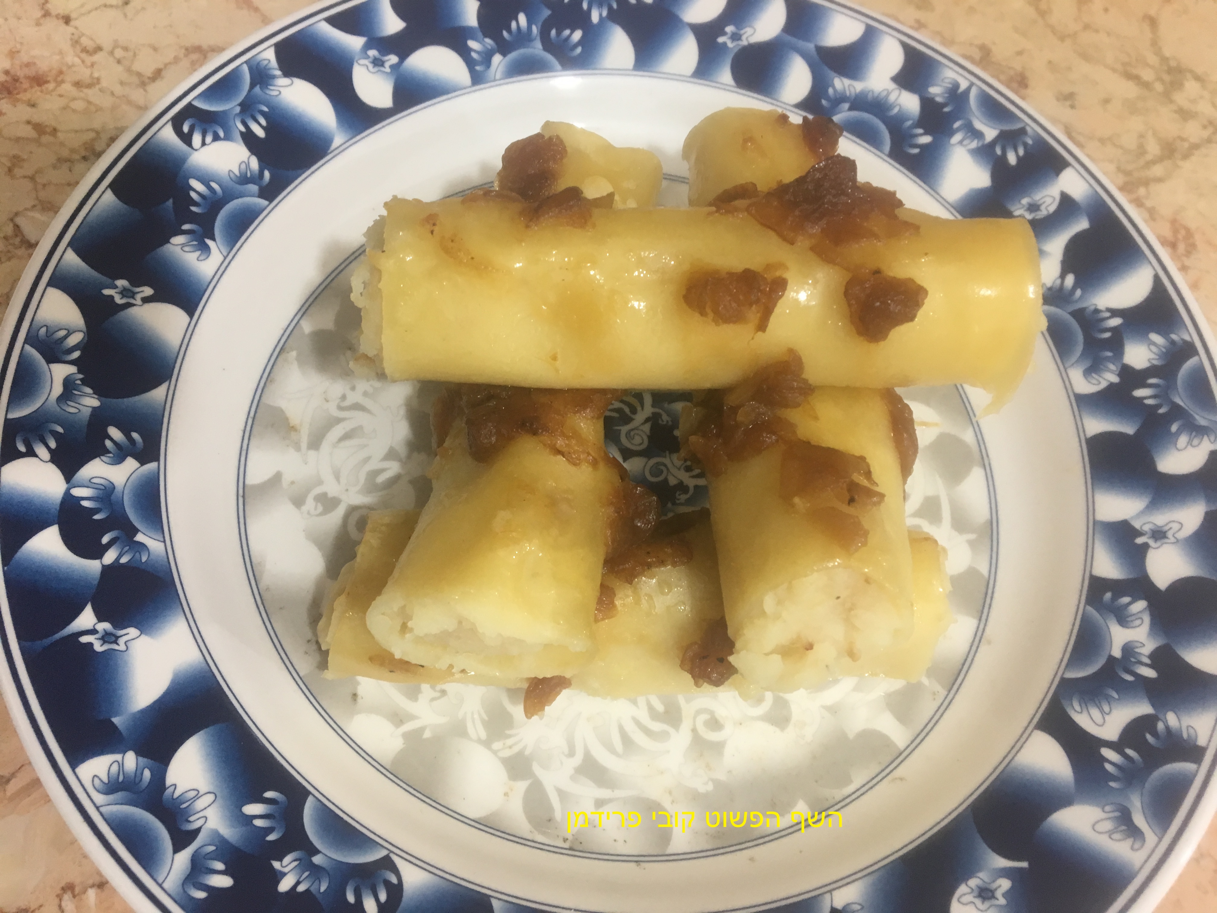 קנלוני ברוטב בצל מקורמל במילוי פירה תפו"א בצל מקורמל וחציל על האש,