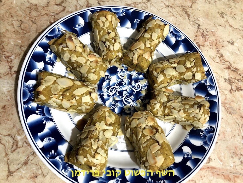 לגלגל כל קרוקט(גליל)בצלחת עם שקדים פרוסים(להדביק מסביב),