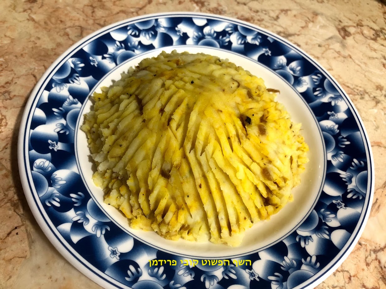 פירה תפו״א עם כורכום ובצל מקורמל,