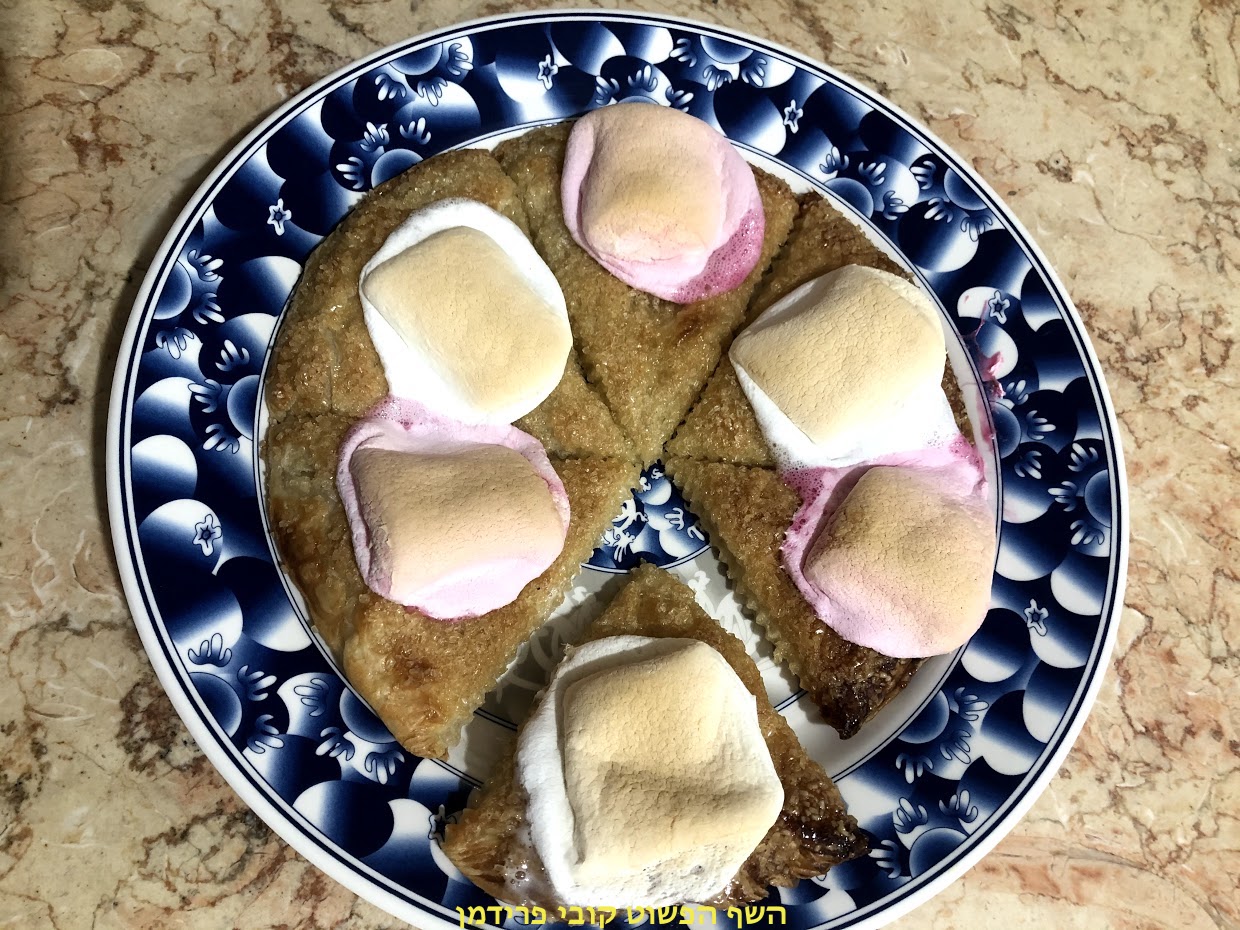 להוציא להניח מעל כל משולש מרשמלו בשני צבעים,