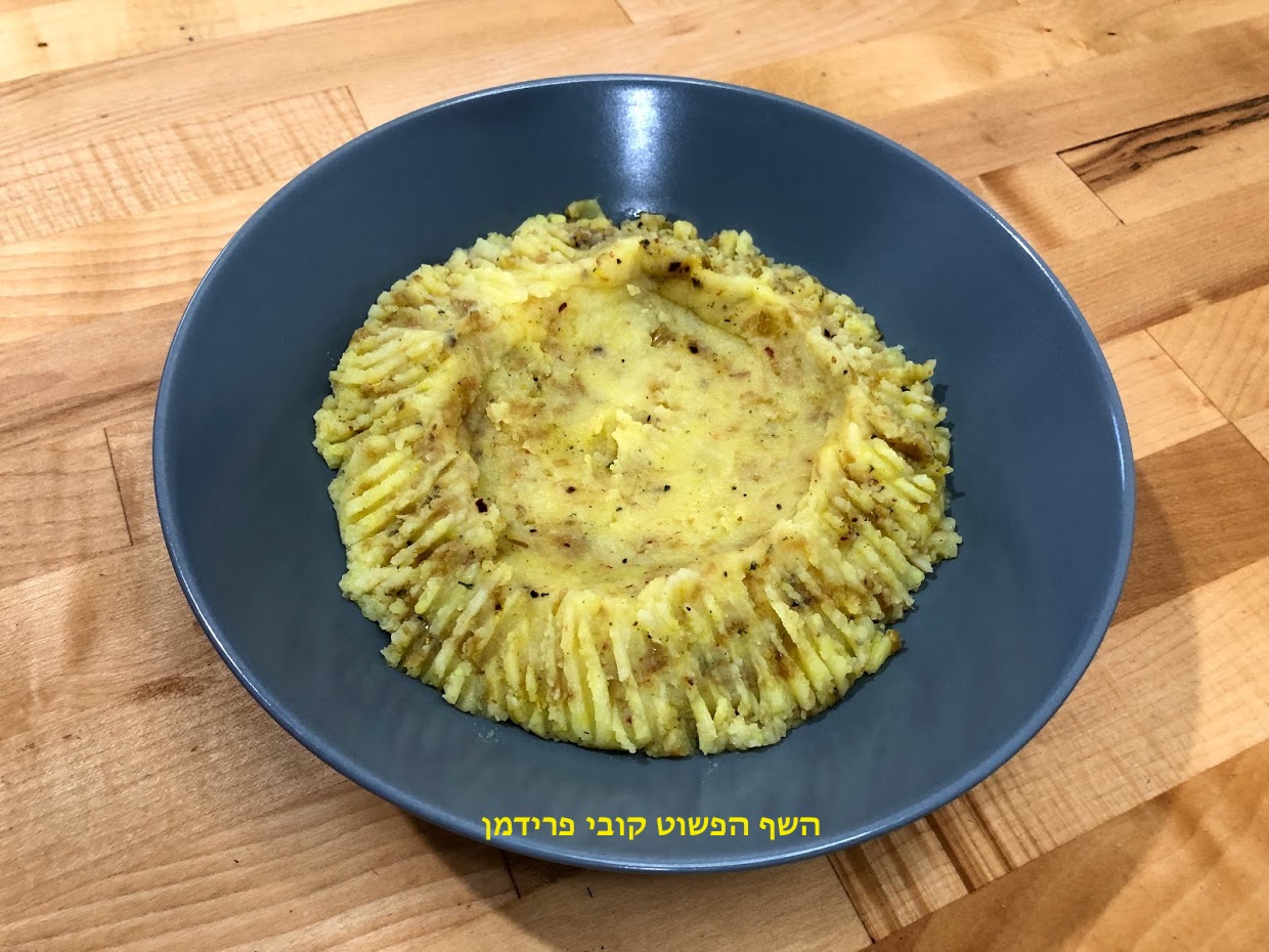 פירה תפוא עם כרישה מקורמלת בניחוח התיבולית ראס אל השף הפשוט טבעוני ללא גלוטן,