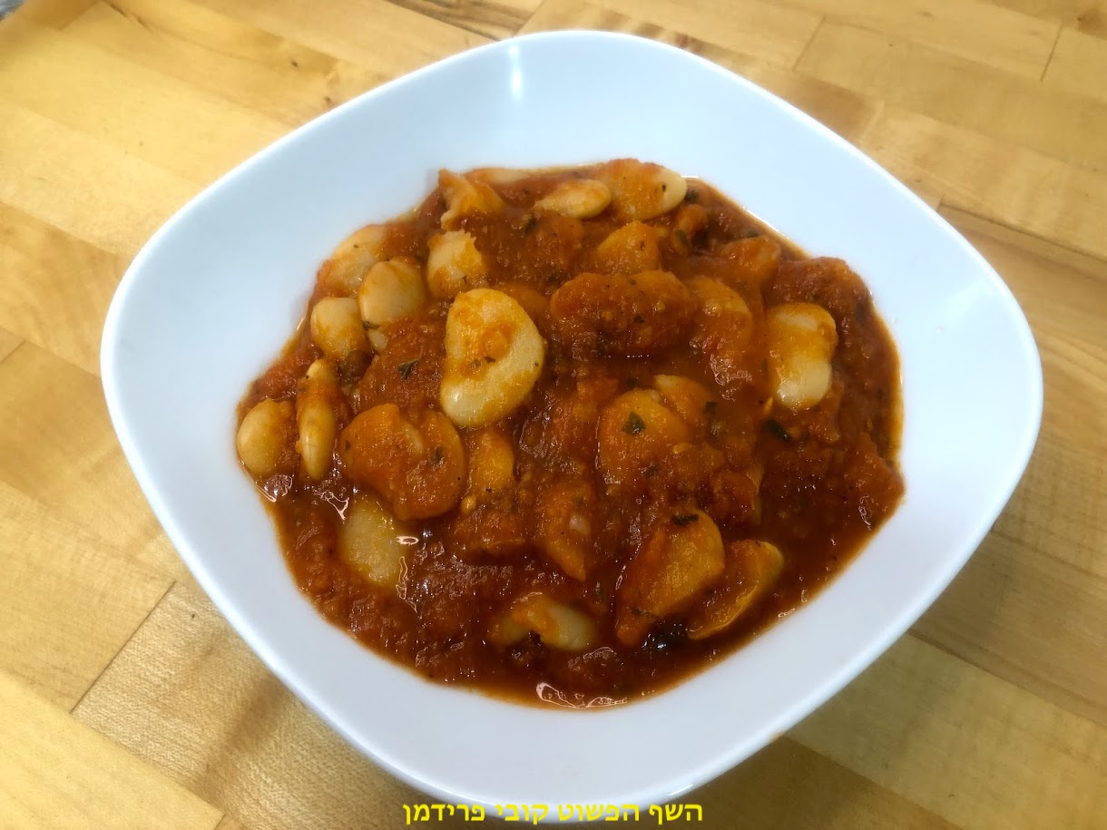 שעועית בובס(לימה ענקית)ברוטב פסטה טבעונית ללא גלוטן,