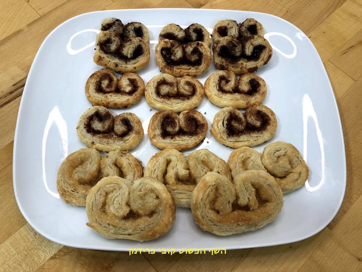 עוגיות אוזני פיל בטעמים סוכר, סוכר קינמון וסוכר קקאו קפה,
